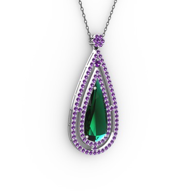 Yeşil kuvars ve ametist 18 ayar beyaz altın kolye (40 cm gümüş rolo zincir)
