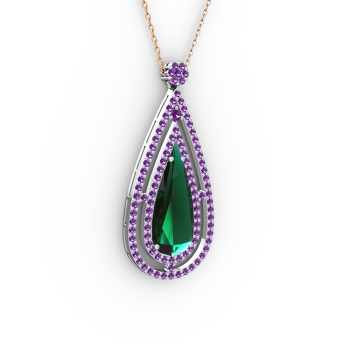 Yeşil kuvars ve ametist 8 ayar beyaz altın kolye (40 cm rose altın rolo zincir)