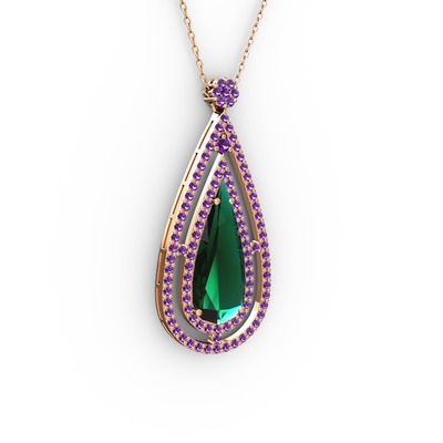 Yeşil kuvars ve ametist 925 ayar rose altın kaplama gümüş kolye (40 cm rose altın rolo zincir)