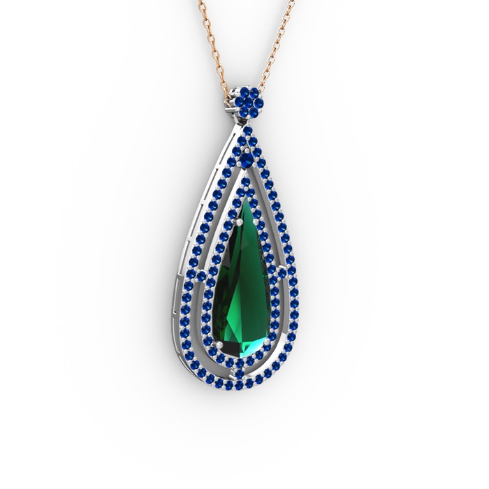 Yeşil kuvars ve lab safir 14 ayar beyaz altın kolye (40 cm rose altın rolo zincir)