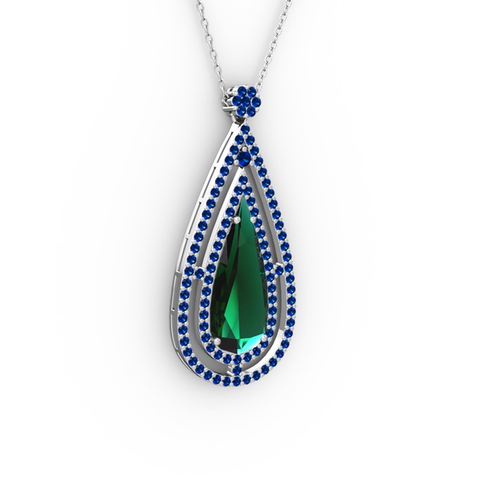 Yeşil kuvars ve lab safir 18 ayar beyaz altın kolye (40 cm beyaz altın rolo zincir)