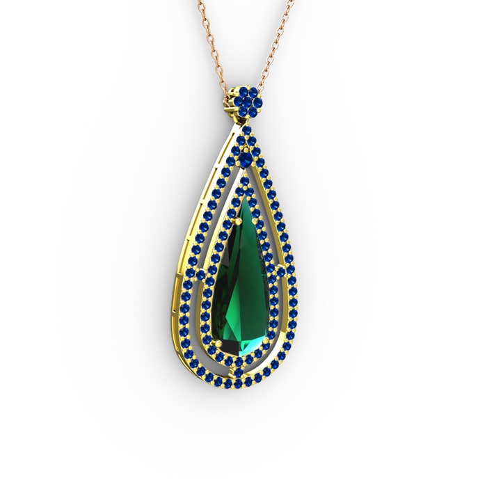 Yeşil kuvars ve lab safir 8 ayar altın kolye (40 cm rose altın rolo zincir)