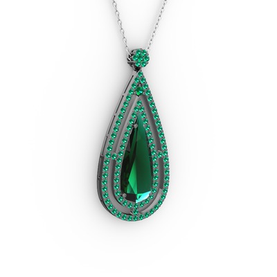 Yeşil kuvars 925 ayar siyah rodyum kaplama gümüş kolye (40 cm gümüş rolo zincir)
