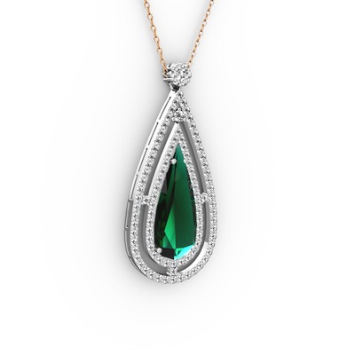 Yeşil kuvars ve swarovski 18 ayar beyaz altın kolye (40 cm rose altın rolo zincir)