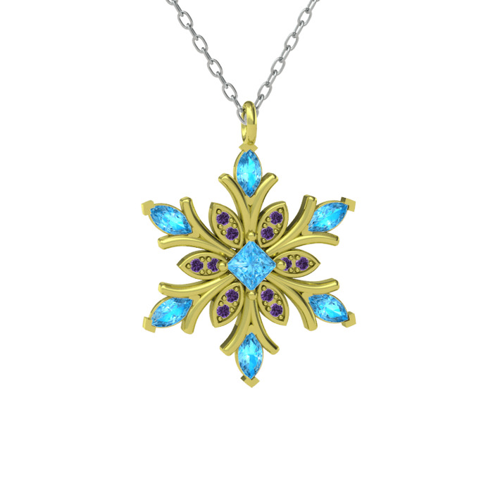 Akuamarin ve ametist 8 ayar altın kolye (40 cm beyaz altın rolo zincir)