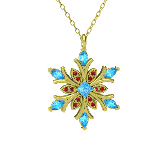 Akuamarin ve garnet 18 ayar altın kolye (40 cm altın rolo zincir)