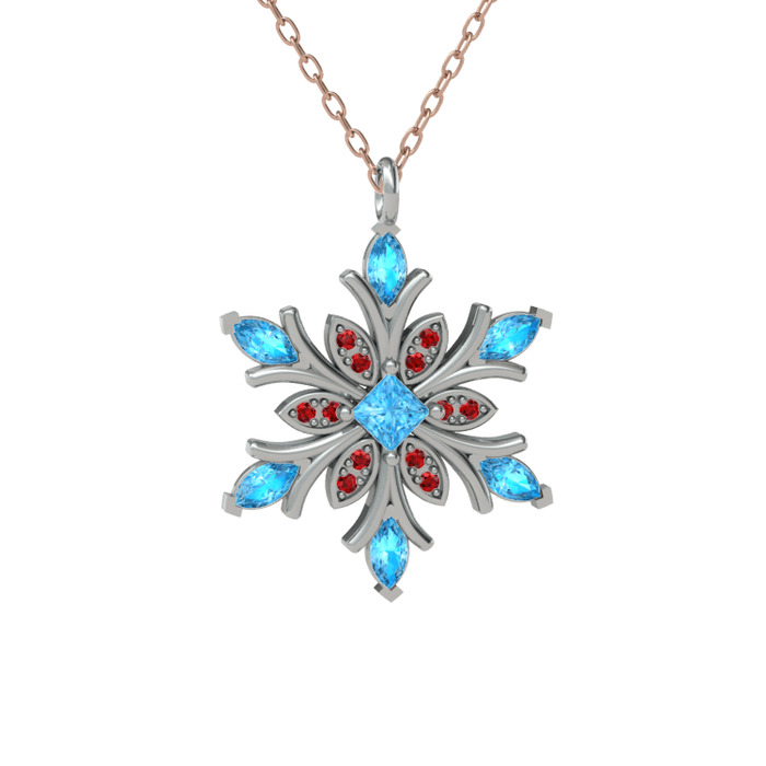Akuamarin ve garnet 18 ayar beyaz altın kolye (40 cm gümüş rolo zincir)