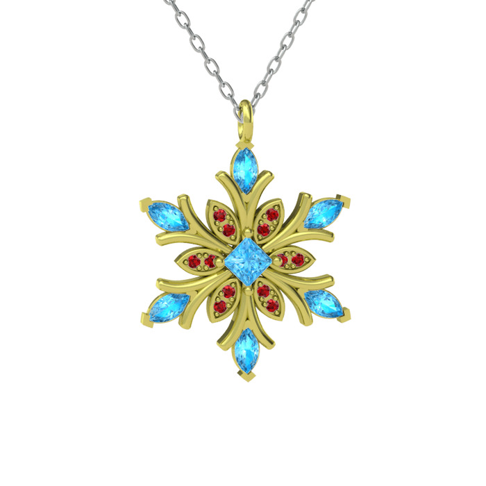 Akuamarin ve garnet 925 ayar altın kaplama gümüş kolye (40 cm gümüş rolo zincir)