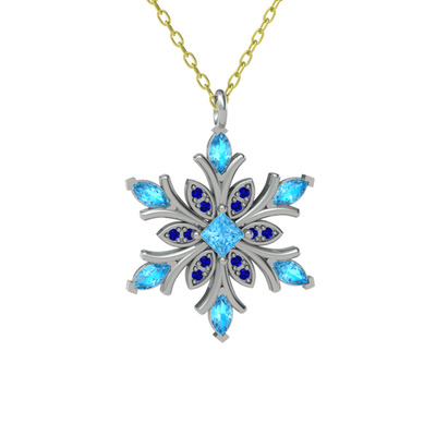 Akuamarin ve lab safir 14 ayar beyaz altın kolye (40 cm altın rolo zincir)