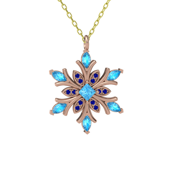 Akuamarin ve lab safir 8 ayar rose altın kolye (40 cm altın rolo zincir)