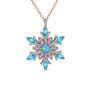 Akuamarin ve pembe kuvars 18 ayar beyaz altın kolye (40 cm rose altın rolo zincir)
