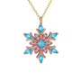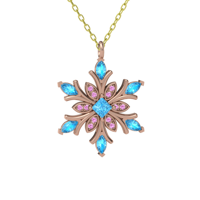 Akuamarin ve pembe kuvars 18 ayar rose altın kolye (40 cm altın rolo zincir)