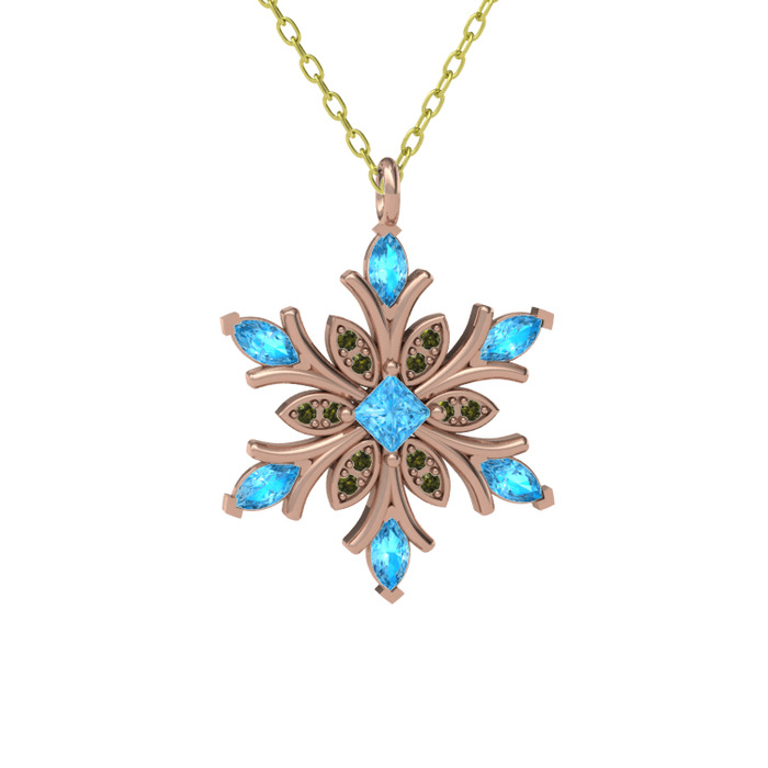 Akuamarin ve peridot 18 ayar rose altın kolye (40 cm altın rolo zincir)