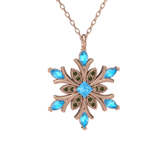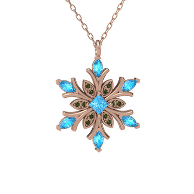 Akuamarin ve peridot 18 ayar rose altın kolye (40 cm rose altın rolo zincir)
