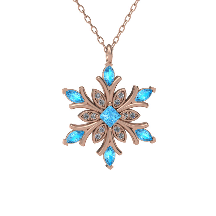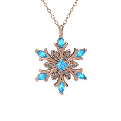 Akuamarin ve pırlanta 18 ayar rose altın kolye (0.1056 karat, 40 cm gümüş rolo zincir)