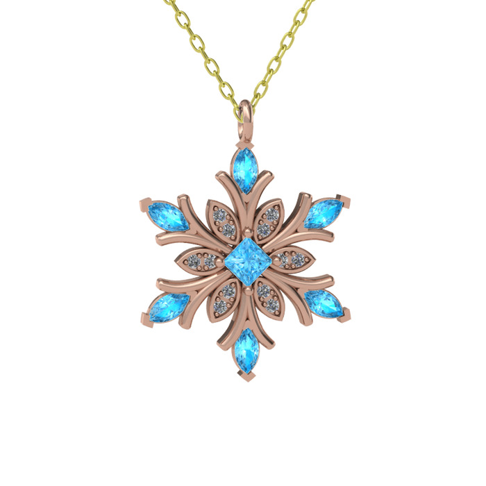 Akuamarin ve pırlanta 8 ayar rose altın kolye (0.1056 karat, 40 cm altın rolo zincir)