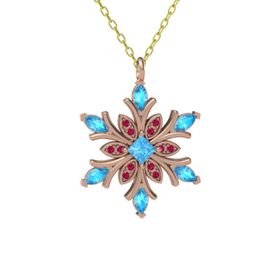 Akuamarin ve rodolit garnet 18 ayar rose altın kolye (40 cm altın rolo zincir)