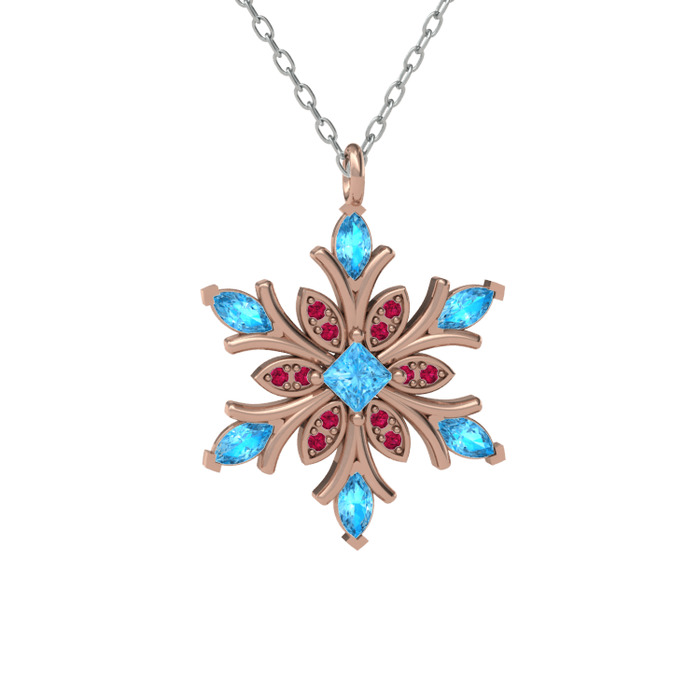 Akuamarin ve rodolit garnet 8 ayar rose altın kolye (40 cm beyaz altın rolo zincir)