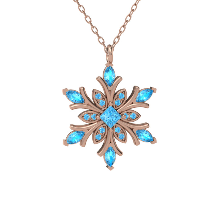 Akuamarin 925 ayar rose altın kaplama gümüş kolye (40 cm rose altın rolo zincir)