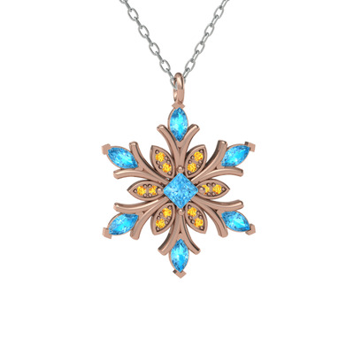 Akuamarin ve sitrin 14 ayar rose altın kolye (40 cm beyaz altın rolo zincir)