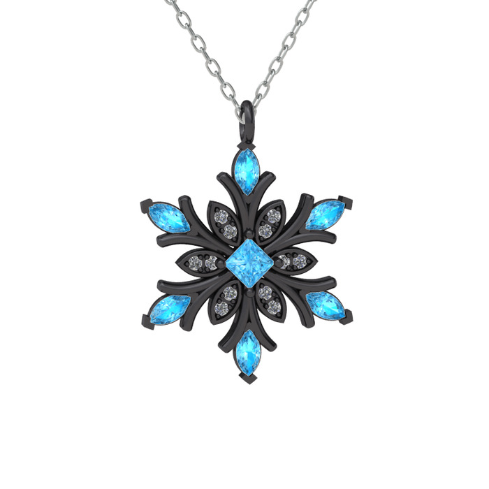 Akuamarin ve swarovski 925 ayar siyah rodyum kaplama gümüş kolye (40 cm beyaz altın rolo zincir)