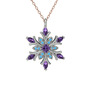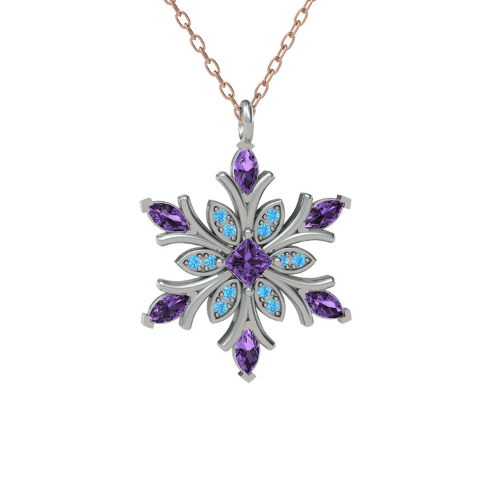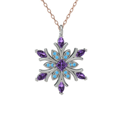 Ametist ve akuamarin 14 ayar beyaz altın kolye (40 cm rose altın rolo zincir)