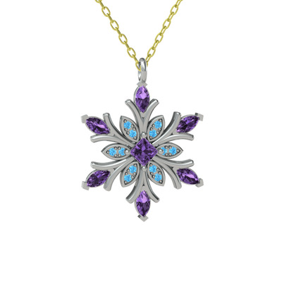 Ametist ve akuamarin 8 ayar beyaz altın kolye (40 cm altın rolo zincir)