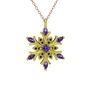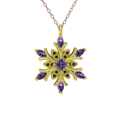Ametist ve dumanlı kuvars 18 ayar altın kolye (40 cm rose altın rolo zincir)