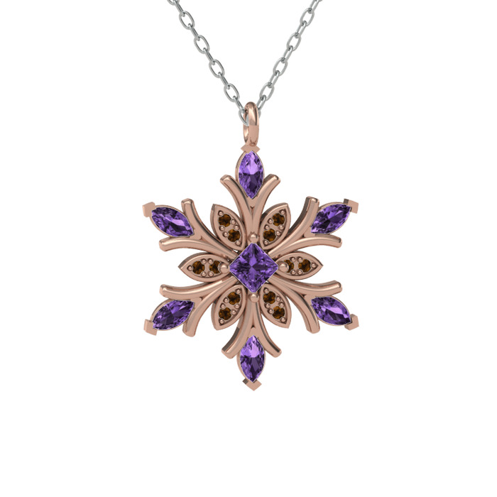 Ametist ve dumanlı kuvars 8 ayar rose altın kolye (40 cm beyaz altın rolo zincir)