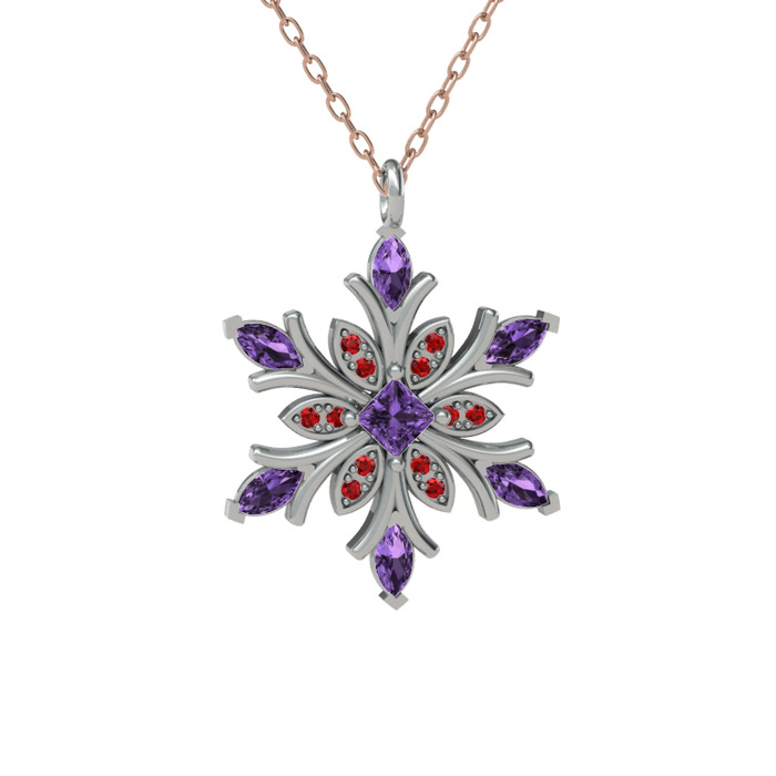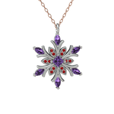 Ametist ve garnet 925 ayar gümüş kolye (40 cm gümüş rolo zincir)