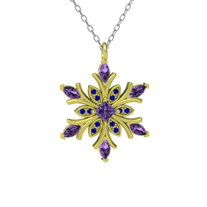 Ametist ve lab safir 8 ayar altın kolye (40 cm beyaz altın rolo zincir)
