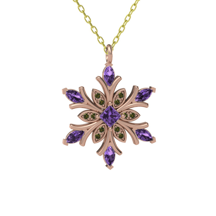 Ametist ve peridot 925 ayar rose altın kaplama gümüş kolye (40 cm altın rolo zincir)