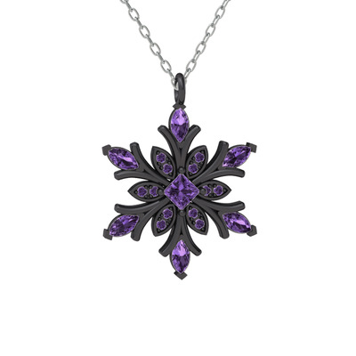 Ametist 925 ayar siyah rodyum kaplama gümüş kolye (40 cm beyaz altın rolo zincir)