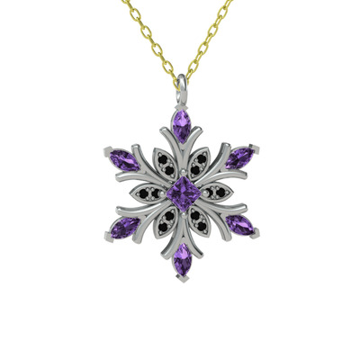 Ametist ve siyah zirkon 18 ayar beyaz altın kolye (40 cm altın rolo zincir)