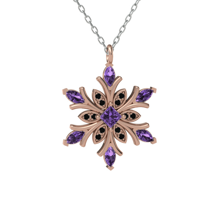 Ametist ve siyah zirkon 18 ayar rose altın kolye (40 cm beyaz altın rolo zincir)