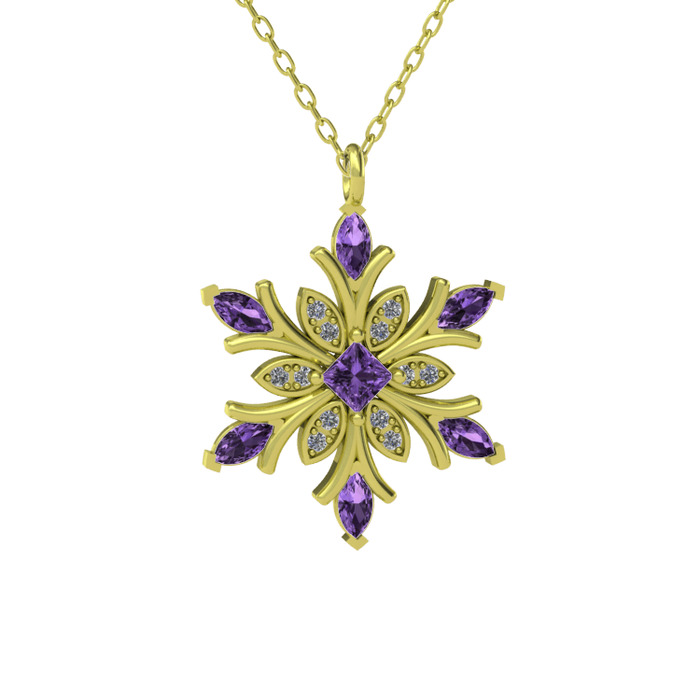 Ametist ve swarovski 8 ayar altın kolye (40 cm altın rolo zincir)