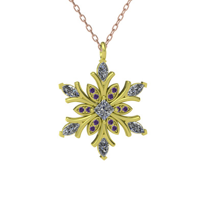 Beyaz zirkon ve ametist 8 ayar altın kolye (40 cm rose altın rolo zincir)