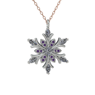 Beyaz zirkon ve ametist 8 ayar beyaz altın kolye (40 cm rose altın rolo zincir)