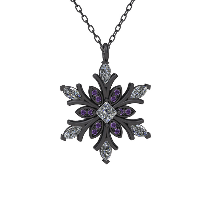 Beyaz zirkon ve ametist 925 ayar siyah rodyum kaplama gümüş kolye (40 cm gümüş rolo zincir)