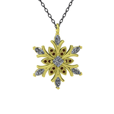 Beyaz zirkon ve dumanlı kuvars 18 ayar altın kolye (40 cm gümüş rolo zincir)