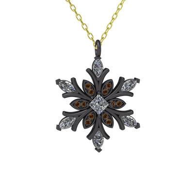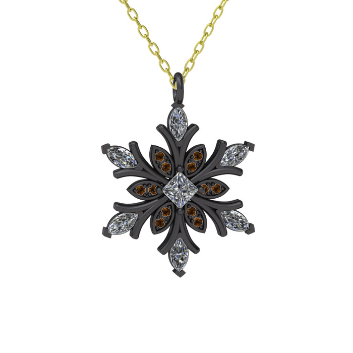 Beyaz zirkon ve dumanlı kuvars 925 ayar siyah rodyum kaplama gümüş kolye (40 cm gümüş rolo zincir)