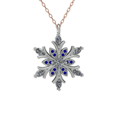 Beyaz zirkon ve lab safir 925 ayar gümüş kolye (40 cm rose altın rolo zincir)