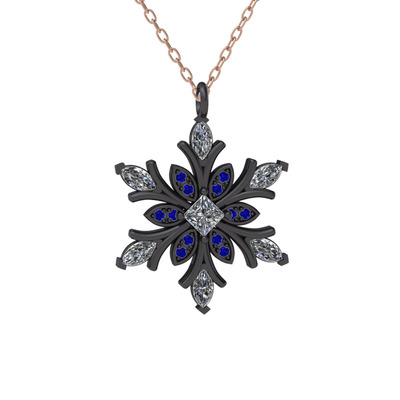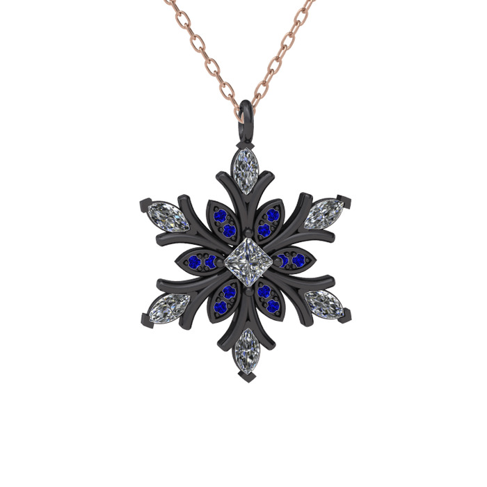 Beyaz zirkon ve lab safir 925 ayar siyah rodyum kaplama gümüş kolye (40 cm rose altın rolo zincir)