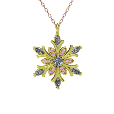 Beyaz zirkon ve pembe kuvars 18 ayar altın kolye (40 cm gümüş rolo zincir)