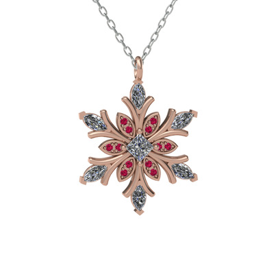 Beyaz zirkon ve rodolit garnet 18 ayar rose altın kolye (40 cm beyaz altın rolo zincir)