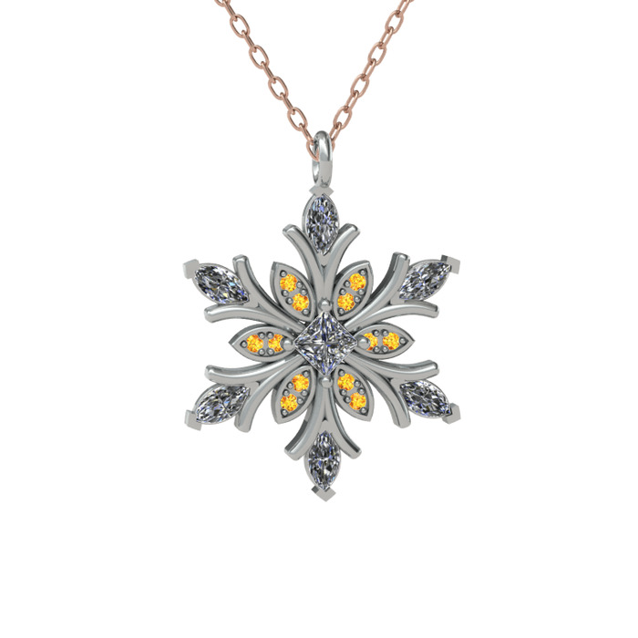 Beyaz zirkon ve sitrin 8 ayar beyaz altın kolye (40 cm rose altın rolo zincir)