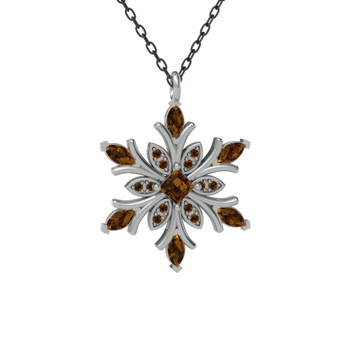 Dumanlı kuvars 8 ayar beyaz altın kolye (40 cm gümüş rolo zincir)
