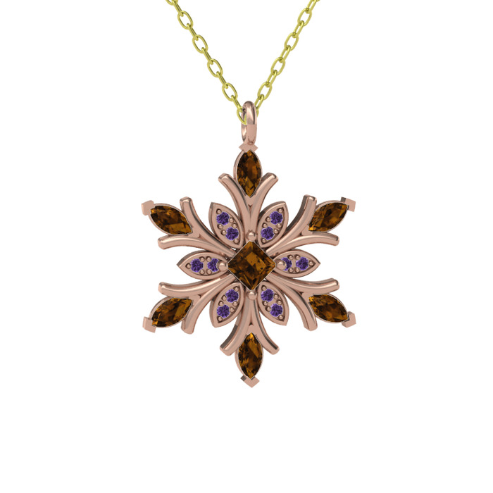 Dumanlı kuvars ve ametist 18 ayar rose altın kolye (40 cm altın rolo zincir)