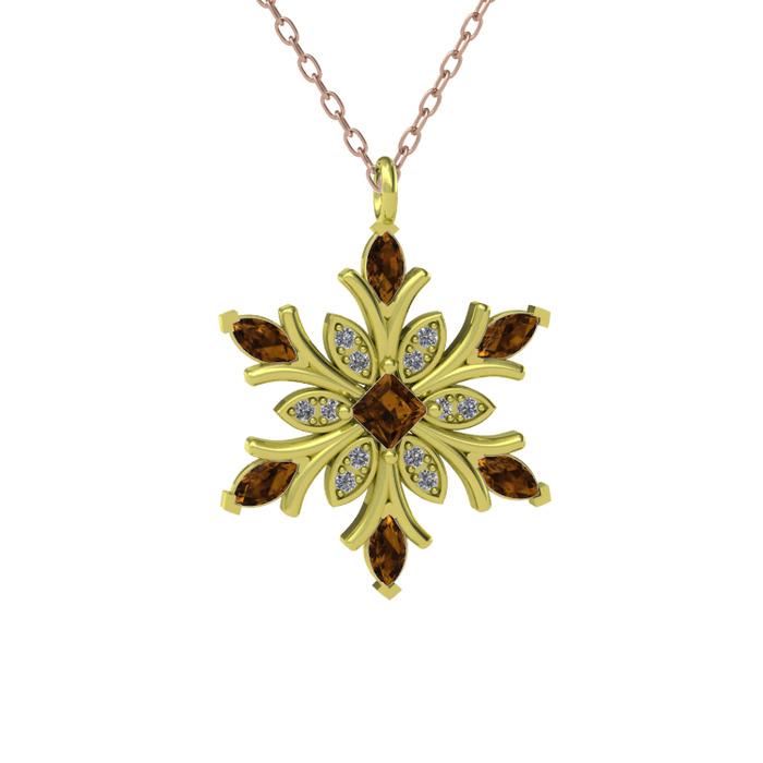 Dumanlı kuvars ve beyaz zirkon 18 ayar altın kolye (40 cm gümüş rolo zincir)