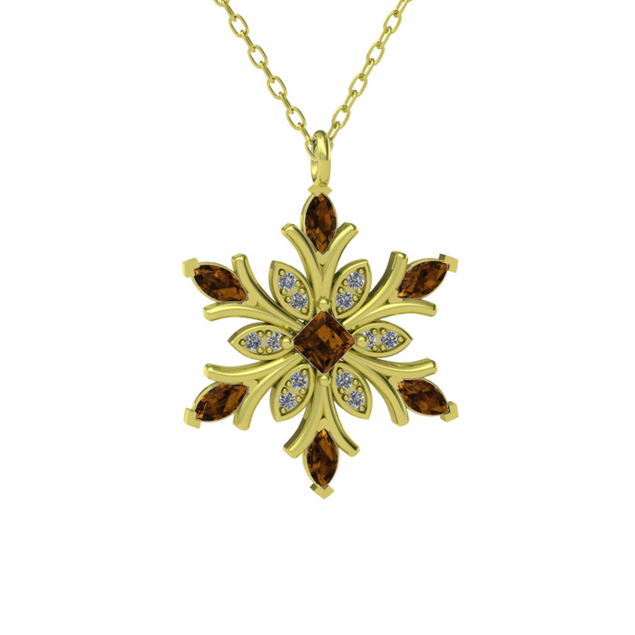 Dumanlı kuvars ve beyaz zirkon 925 ayar altın kaplama gümüş kolye (40 cm altın rolo zincir)